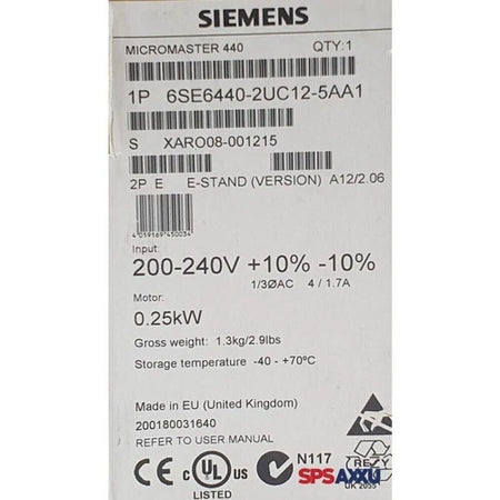 New Siemens 6SE6440-2UC12-5AA1 MICROMASTER440 without filter 6SE6440-2UC12-5AA1 If you need more product pictures, more quantity, or other questions. (E-mail: 1092800@gmail.com what app: +351 928 218 075) Brand New