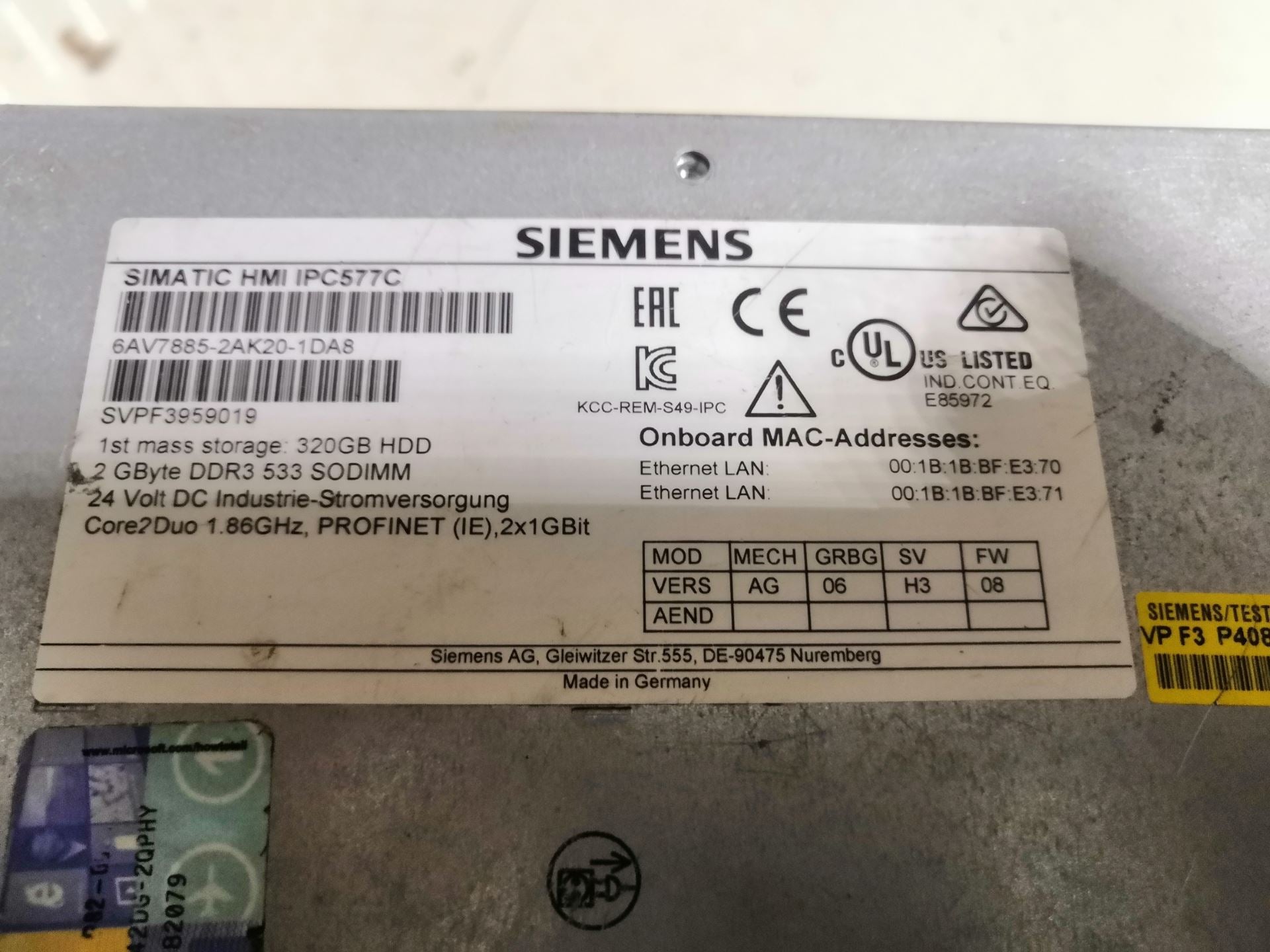 SIEMENS 6AV7885-2ak20-1DA8 6AV78852ak201DA8