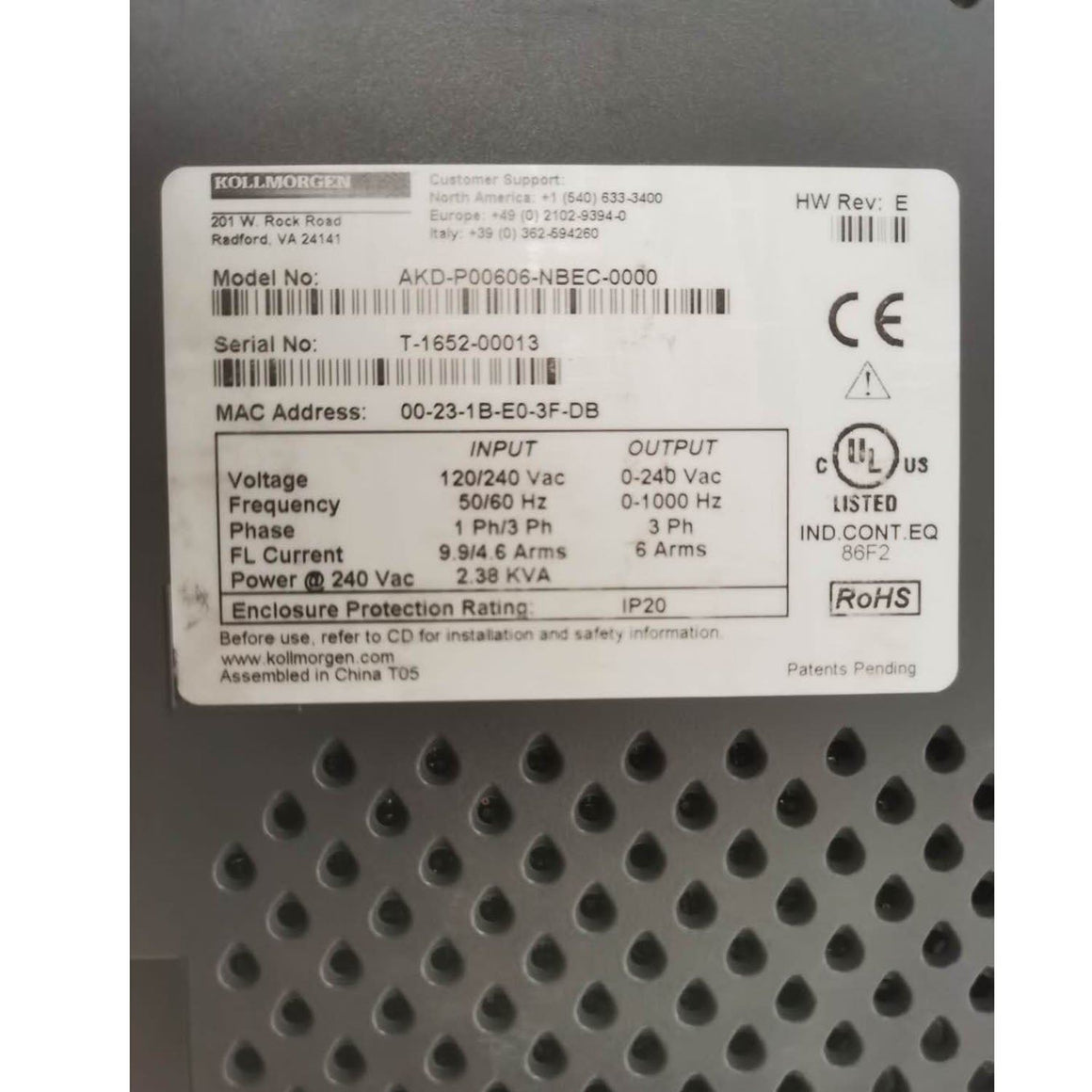 - Model Number:AKD-P00606-NBEC-0000