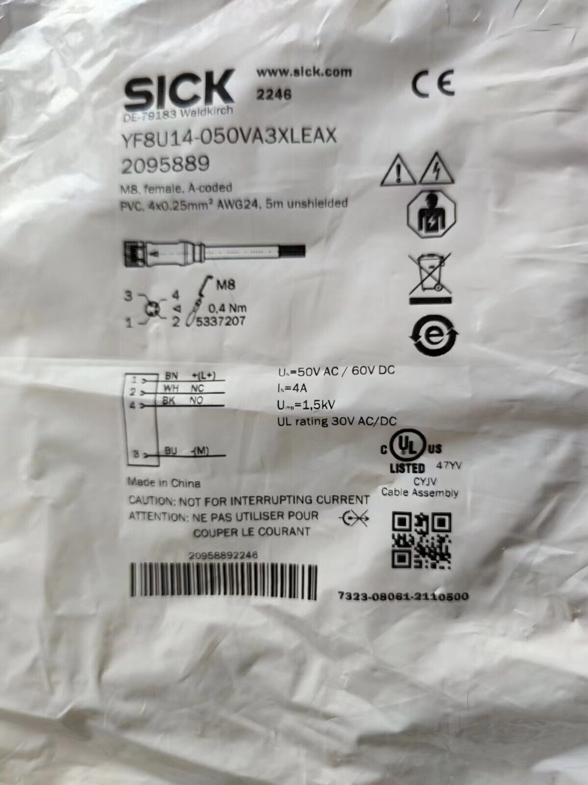 1 peça para SICK YF8U14-050VA3XLEAX novo YF8U14050VA3XLEAX em stock C-20-3-012
