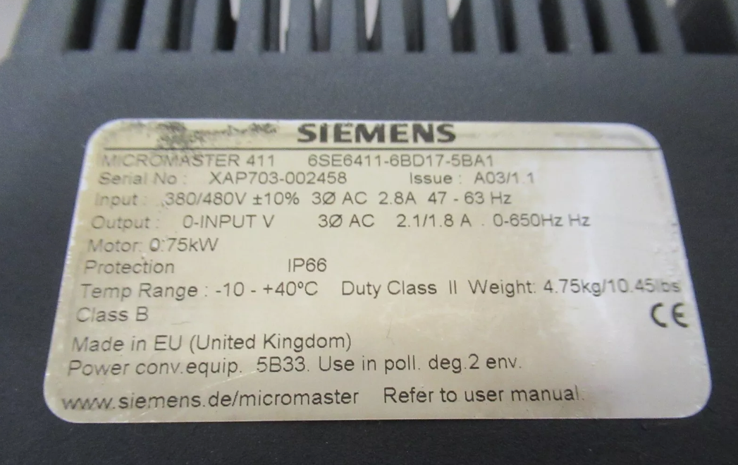 1 peça para Siemens 6SE6411-6BD17-5BA1 novo