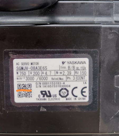 1 peça servo motor Yaskawa usado SGMJV-08A3E6S