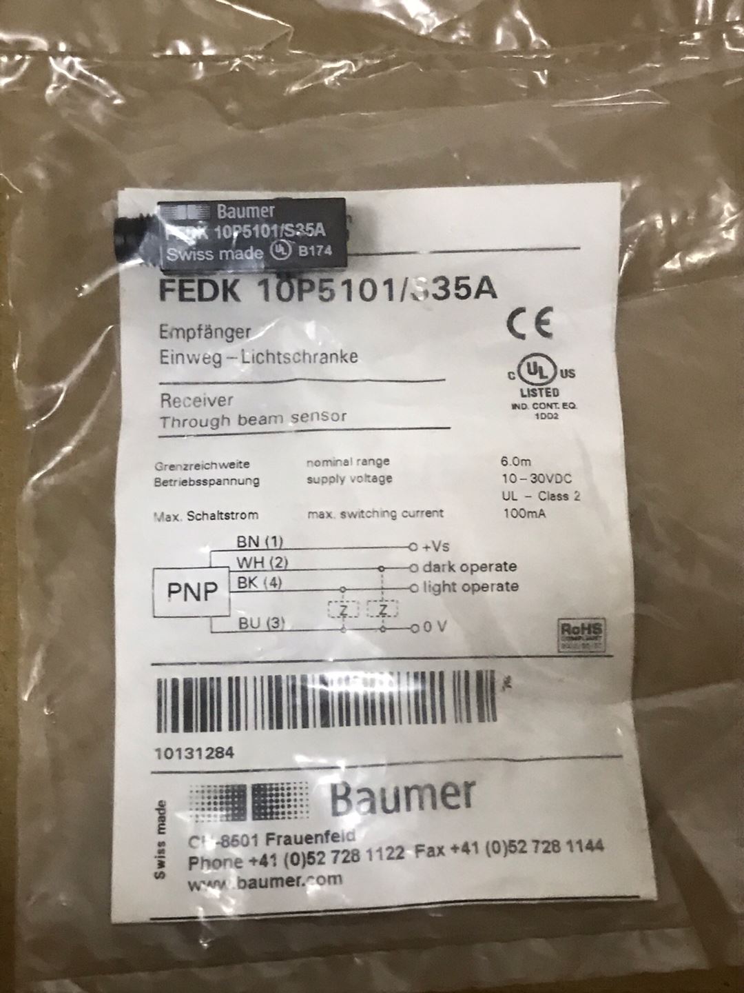 Baumer FEDK 10P5101/S35A, If you need more pictures, or need more quantity, or have other problems. Please contact me. list price is for one unit