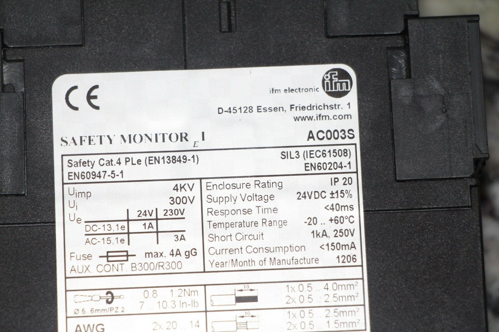 IFM AC003S,代码:M027。如果您需要更多图片,或需要更多数量,或有其他问题,请联系邮箱:sales@360dcs.com
