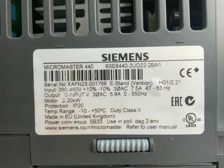 全新带盒西门子 6SE6440-2UD22-2BA1 MM440 变频器 2.2KW 3AC