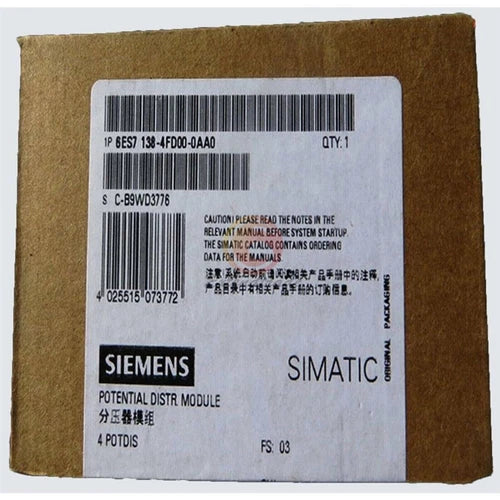 New Siemens 6ES7138-4FD00-0AA0 Potential Distributor Module 6ES7 138-4FD00-0AA0 If you need more product pictures, more quantity, or other questions. (E-mail: 1092800@gmail.com what app: +351 928 218 075) Brand New
